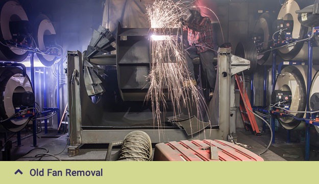 The new modular fans were installed in arrays on either side of the existing fan over two weekends (Fig 2). During the interim two week period, airflow from the filters flowed around and through the new fan array into the old fan. After completion of the arrays, and final electrical connections to the new fans, the old fan was cut into pieces and removed through the rear of the casing. Plenum walls were installed and sealed and the new fans started.